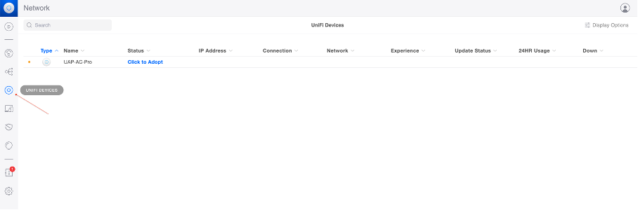 11- Contrôler l’adresse mac de l’antenne WiFi en cliquant sur l’antenne et ensuite cliquer sur « Adopt Device »