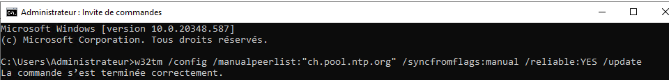 • Après avoir configuré le serveur NTP, redémarrez le service de temps Windows pour que les modifications prennent effet.