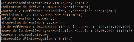 • Pour vérifier que votre serveur est correctement configuré pour utiliser le serveur NTP, vous pouvez utiliser la commande :