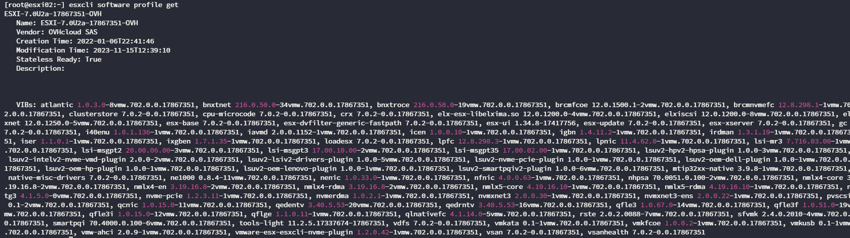 Répertorier les profils fournis par VMware pour ESXi dans les référentiels VMware