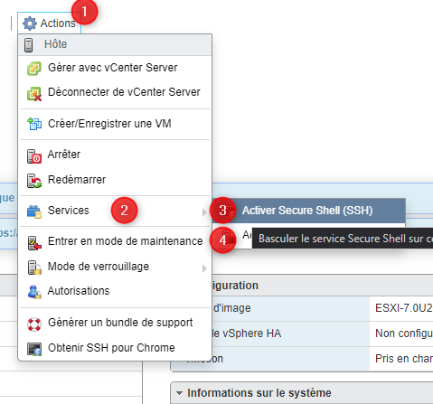 Connectez-vous en SSH sur l’ESXi (avec l'utilisateur "root")