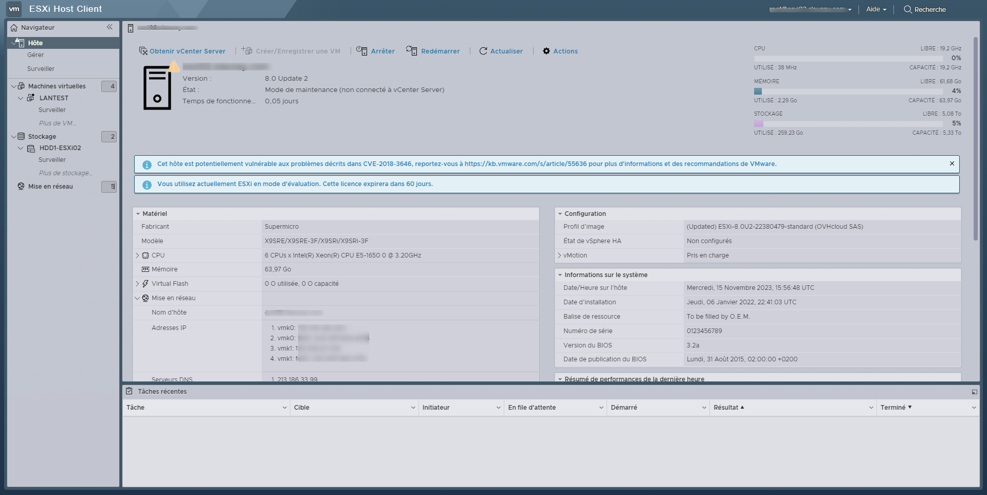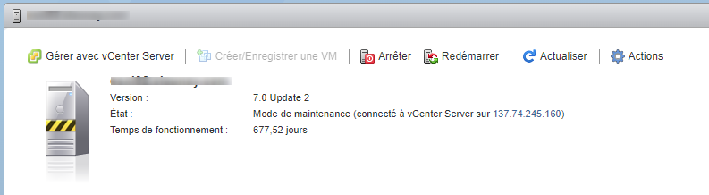 Pour contrôler que le mode maintenance est bien activé allez sur l’ESXi Host Client et le logo du serveur devrait s'afficher comme ceci: